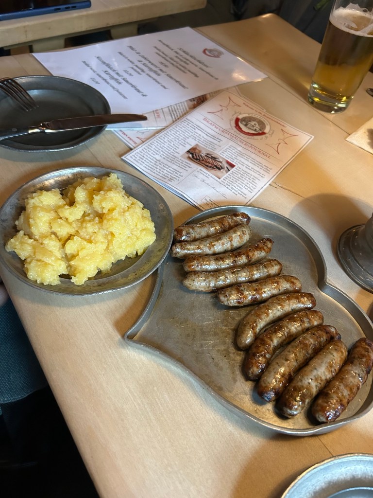 Nuremberg is your quintessential German village with colourful buildings, beautiful waterways and bridges, and lots of cafes and outdoor food stalls. We had just enough time to walk around the Old Town including the castle and to make a stop for some delicious bratwurst complete with potato salad and mustard for lunch. The restaurant we went to, “Bratwursthäusle”, was originally opened back around 1312 and has been serving the same recipe ever since then and it was simply fantastic.