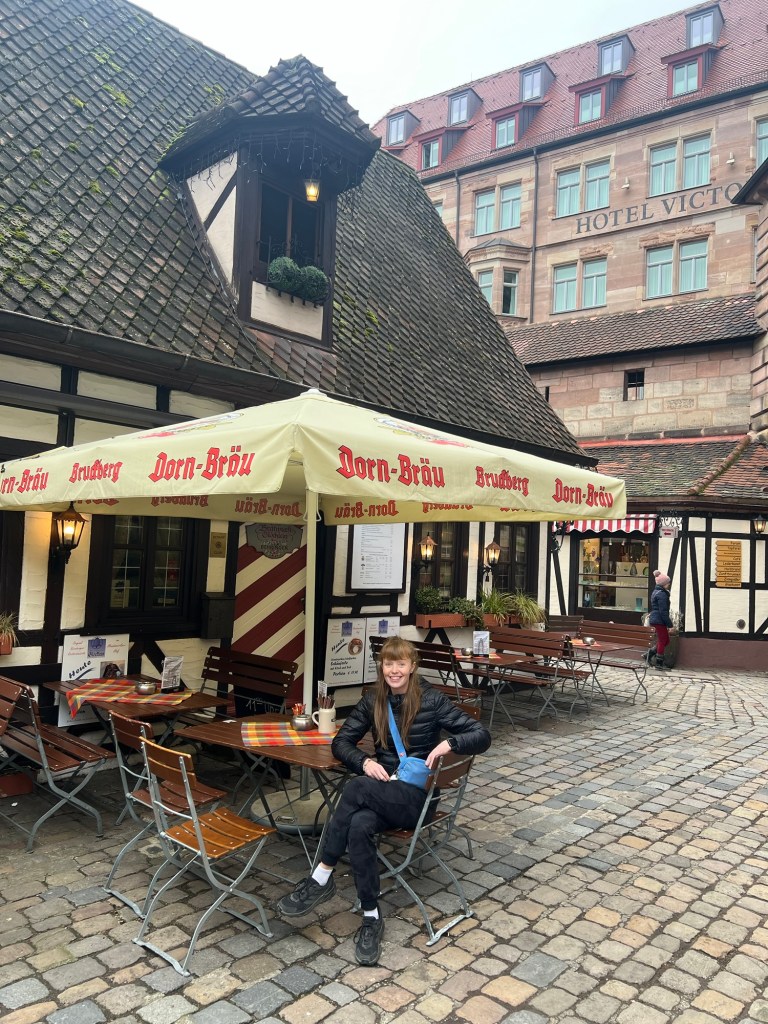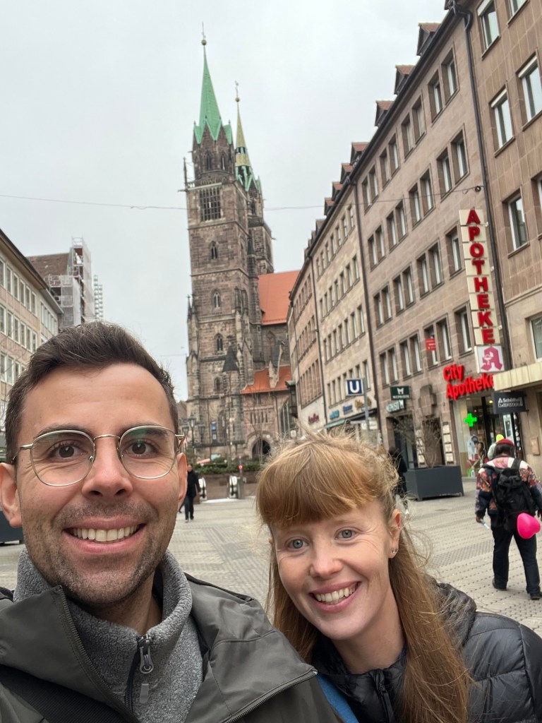 After a rather turbulent 14 hour flight (Julia’s longest ever), we were thrilled to have arrived in Europe! We landed in Frankfurt, Germany, where we spent only one night before travelling onward. As we discovered with our planning, Germany is one of the most expensive countries in Europe, so unfortunately we couldn’t stay long. We did however, still find time to have a frankfurter and Krombacher before moving on. We also booked a train with a 3 hour layover in Nuremberg so we could at least check out one of Germany’s cute village towns as well!