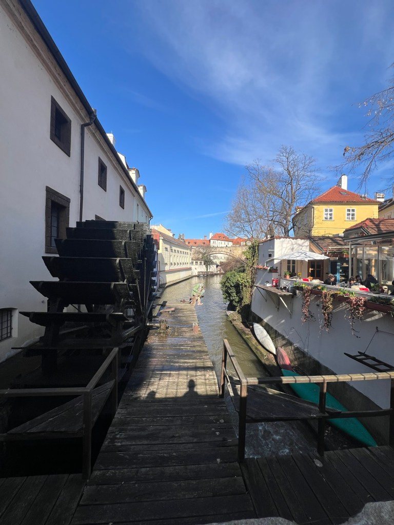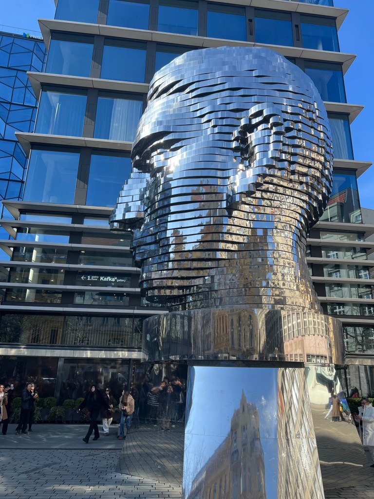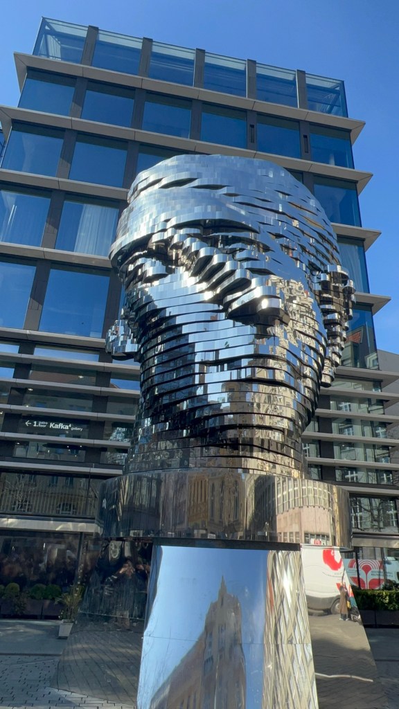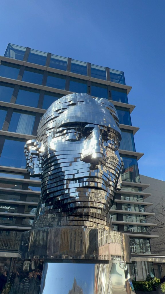 There are also many Franz Kafka art pieces and sculptures around town but the coolest one had to be a huge rotating metal head of him. Every hour or so, the many slices start spinning in different directions and the way the sun glimmered off it and onto the walls was beautiful.