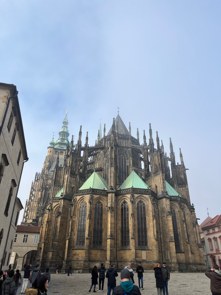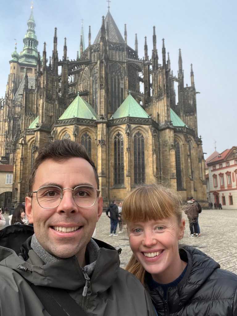 We had scheduled an extra day in Prague because there were a couple of day trips that we thought we might want to do while we were in town, and we eventually settled on a trip to the town of Kutna Hora. Kutna Hora is well known because it is home to the Sedlec Ossuary, a small medieval Gothic church with a basement that is adorned with the real skeletons of 40,000-70,000 people! It is known as the “Bone Church,” and it features artistic arrangements of bones, including a large chandelier, pyramids and a coat of arms. It felt extremely spooky and eerie to be inside the church but it was fascinating at the same time. A lot of the bones were from people who died from the 14th-century plague and the 15th century Hussite wars so definitely not something you see every day! We were not allowed to take photos inside, but you can Google it to see what it looks like! We wandered through the small town, saw the stunning Gothic architecture of St Barbara’s Cathedral and had an afternoon treat before heading back to Prague.