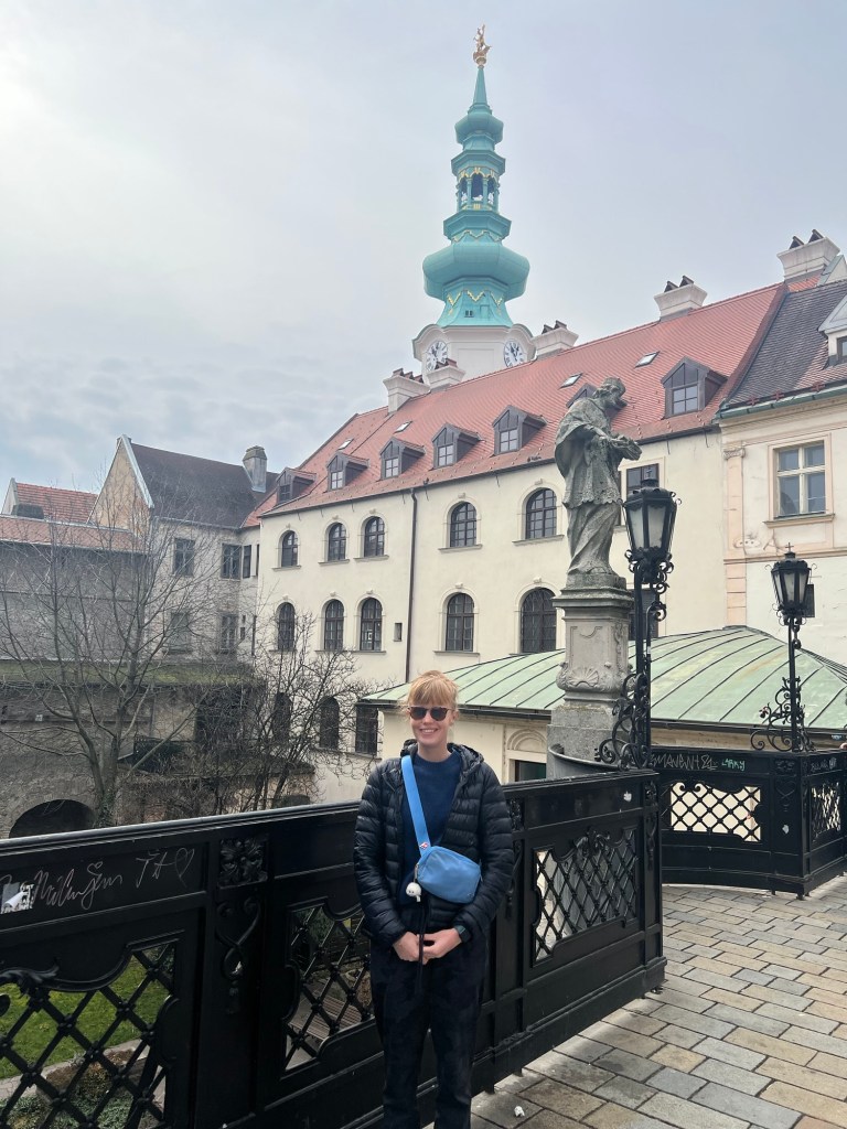Some highlights for us included the Bratislava castle, St Martins Cathedral, and the Church of St. Elizabeth (also known as the “Blue Church”). While we were here, we also indulged in some really delicious vegan and gluten free crepes at Funki Punki pancakes. Not at all related to the place we were visiting, but delicious nonetheless! We walked around the whole old town which was super cute. We made sure to see the Town Hall which has a cannon ball embedded from when Napoleon’s army laid siege to Bratislava in 1809.