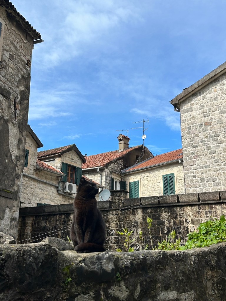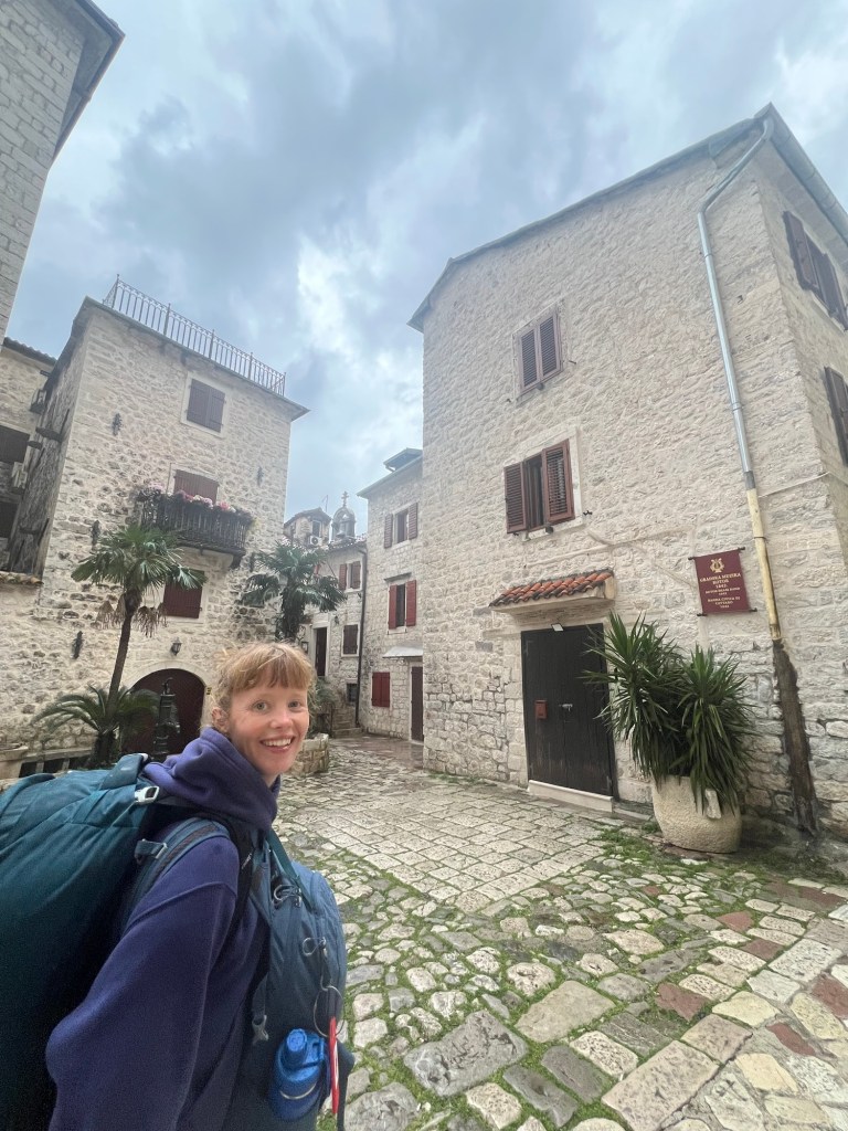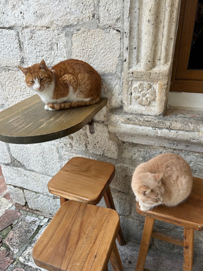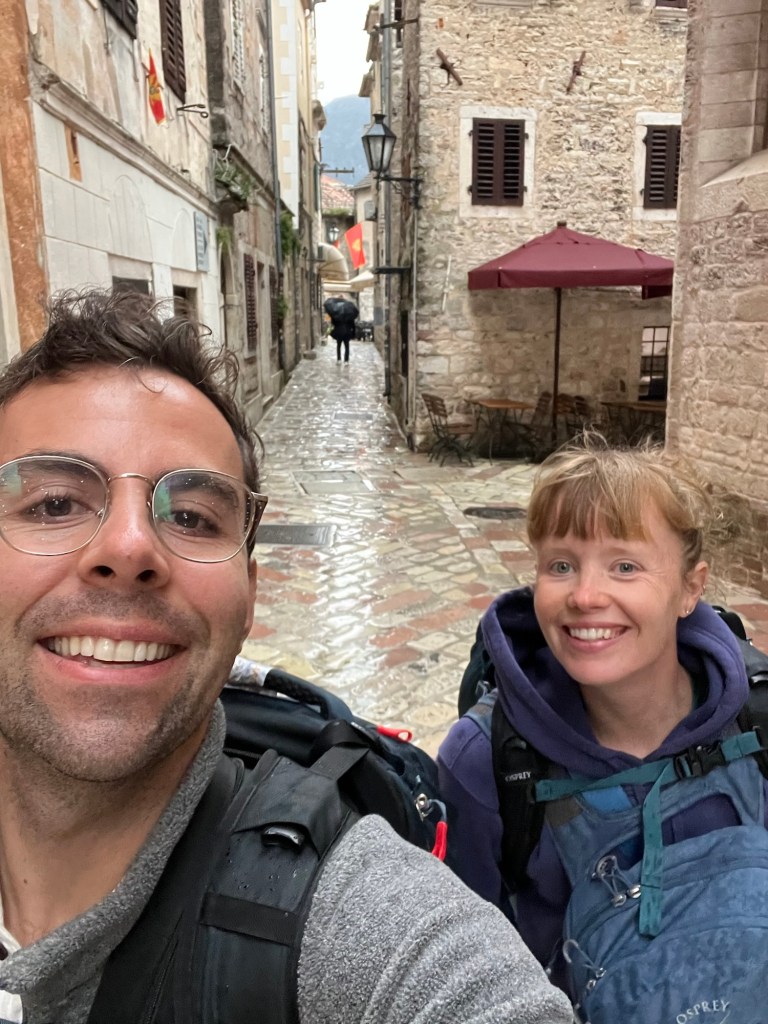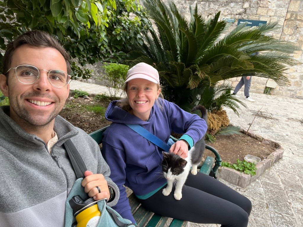 After a stunning 6 hour bus ride from Mostar through mountains and overlooking beautiful cliffs, we arrived to the rainy town of Kotor in Montenegro. We dropped off all our gear and after drying off, we immediately got to exploring. Montenegro was a suggestion of Izzy’s and it totally lived up to the hype. We really loved exploring the old town here, as it had a lot of charm with the cobble stone streets, stone buildings with green shutters, and plenty of adorable cats. While in Kotor, we took advantage of the time between rain showers to explore near the water and take in the beauty of the mountains surrounding the town on all sides.