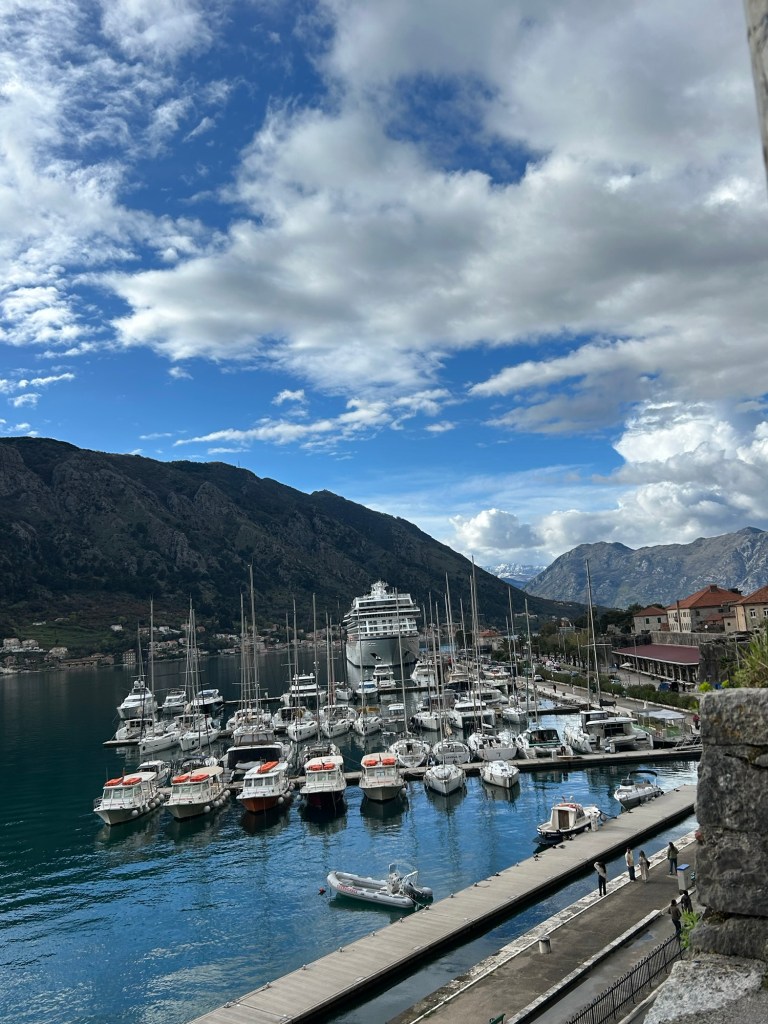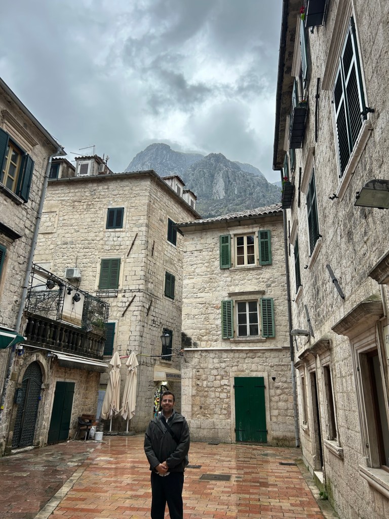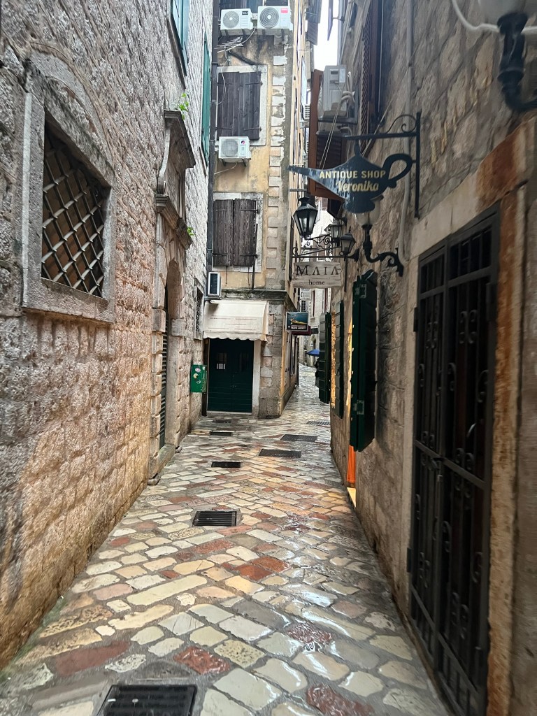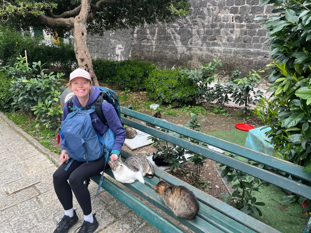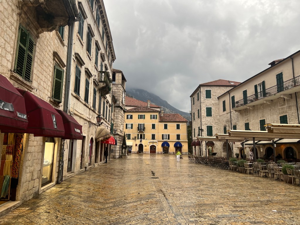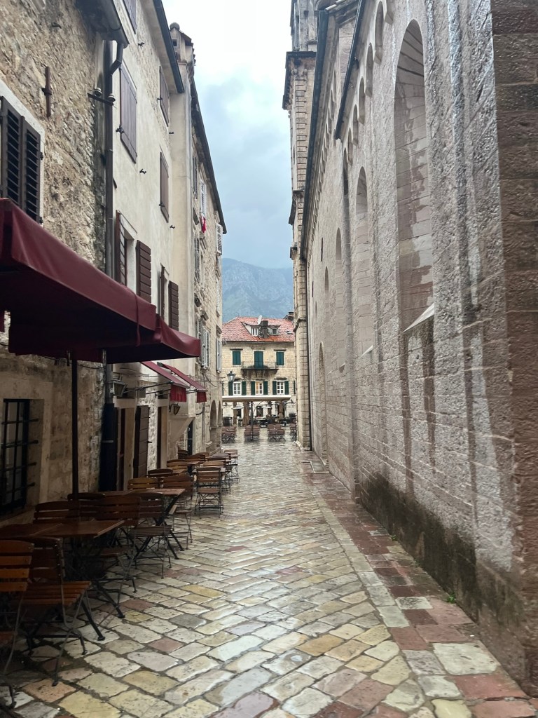 After a stunning 6 hour bus ride from Mostar through mountains and overlooking beautiful cliffs, we arrived to the rainy town of Kotor in Montenegro. We dropped off all our gear and after drying off, we immediately got to exploring. Montenegro was a suggestion of Izzy’s and it totally lived up to the hype. We really loved exploring the old town here, as it had a lot of charm with the cobble stone streets, stone buildings with green shutters, and plenty of adorable cats. While in Kotor, we took advantage of the time between rain showers to explore near the water and take in the beauty of the mountains surrounding the town on all sides.