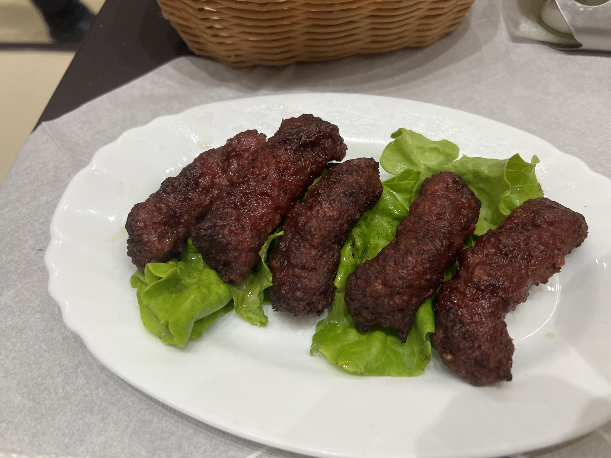 We knew very little about Albanian food so we decided to go out for a very delicious meal here of some traditional Albanian dishes: salsiçe (sausage), speca te mbushur (stuffed bell pepper), sallate greke (Greek salad) and tasqebap (traditional soup). All were great but Julia particularly liked the speca te mbushur and Jack loved the tasqebap.