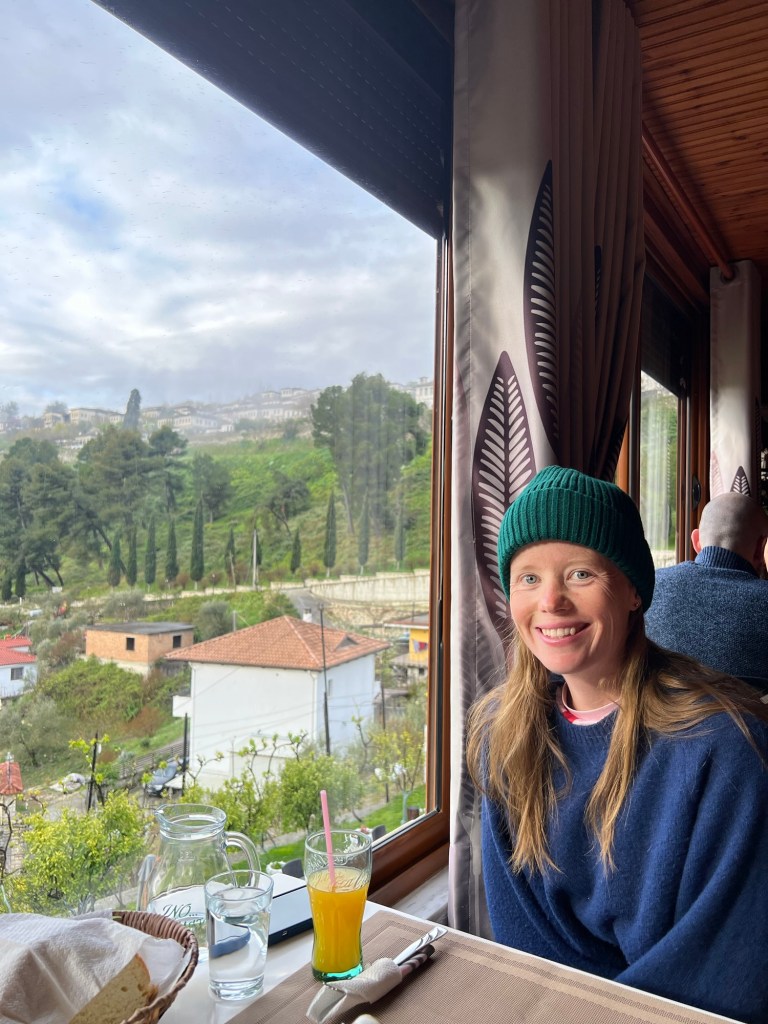 We were very excited for the place that we had booked to stay in Berat. It was up a massive hill, which we didn’t know when we decided to walk from the bus station to our hotel with our big backpacks on in the rain. Needless to say we arrived quite sweaty and got our workout in for the day! Our place was super cozy and overlooked the old town of Berat on one side with a view of the castle on the other. It was operated by a really lovely couple who provided the best breakfast spread each morning. We wished that we had one extra night here just for the delicious breakfast and amazing views each morning!