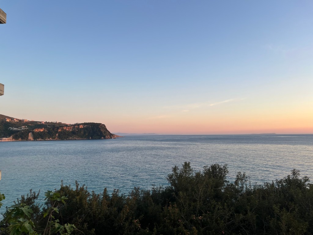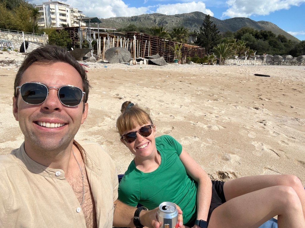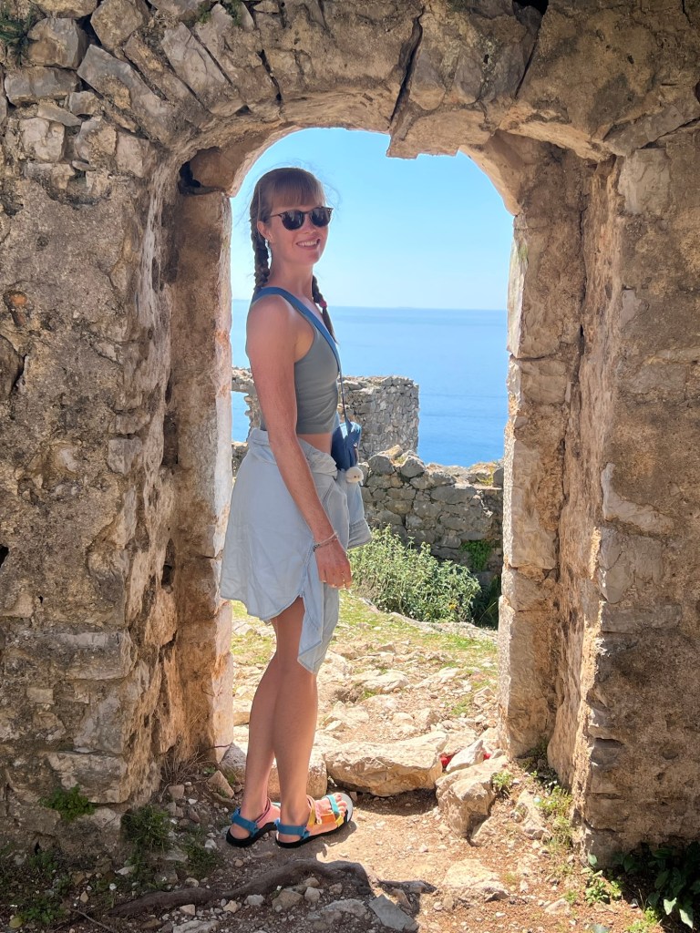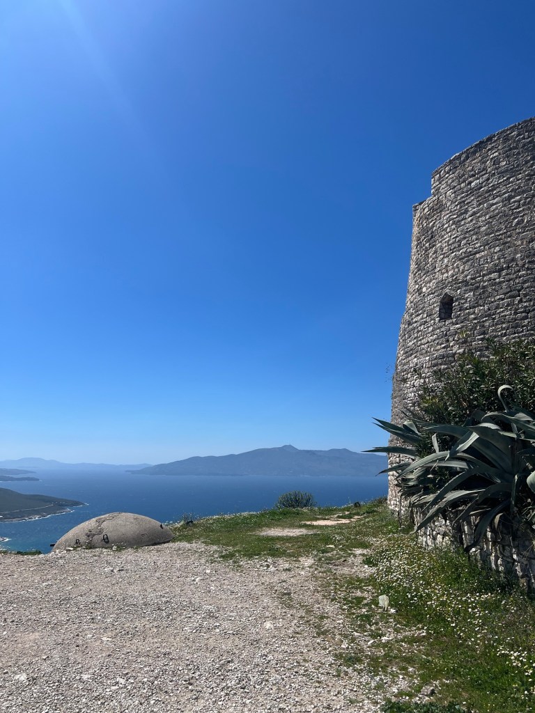 Stepping off the bus in Himarë, we were blown away by how beautiful, clear and clean the water was! Our hotel was across the street from one of the beaches, and because we were there in the shoulder season, we pretty much had it all to ourselves throughout our stay. Our host told us that in a month, the beaches would be covered in sun beds and the streets and restaurants would be packed. It was pretty quiet and not everything was open, but we agreed that it was nice to visit when it was quieter as opposed to slammed with tourists. We quickly settled into our routine of exploring the town, but were grateful to add spending lots of time reading & relaxing at the beach watching some beautiful sunsets to our time here. We also walked up to the Himarë castle one day to take in some spectacular views.