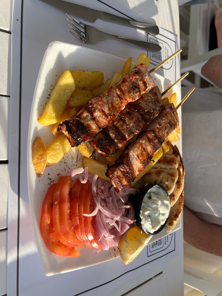 For any geographers out there, you can probably see where our route is slowly taking us at this point. As we make our way south down the coast, we are getting closer to Greece, and we can actually see Corfu from where we are staying! We noticed a dramatic increase in the Greek influence in the food and the architecture in particular. We had a really delicious meal that was foreshadowing to our upcoming time in Greece (see photo below)!